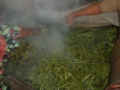 Die Vanilleschoten werden gebündelt und versanbereit gemacht.